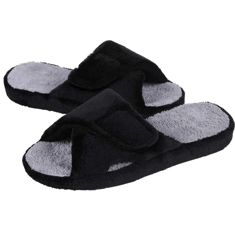 Leur conception ergonomique assure un bon maintien naturel du pied, tandis que la forme ouverte permet un enfilage facile et rapide. Parfaites pour la chambre, le salon ou le télétravail, elles s’adaptent à un usage quotidien.