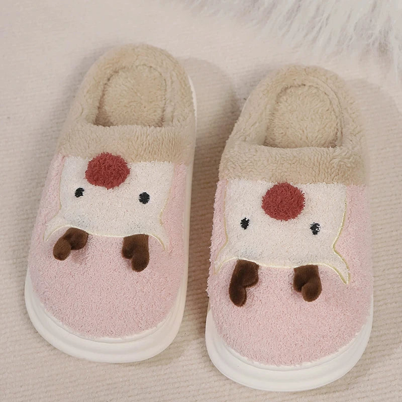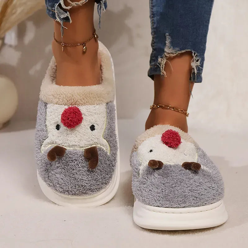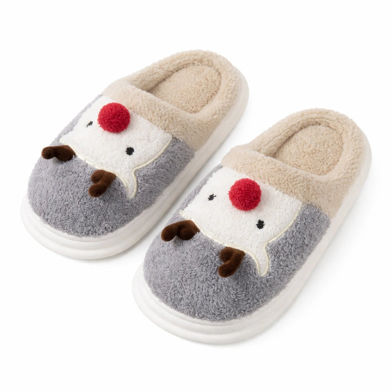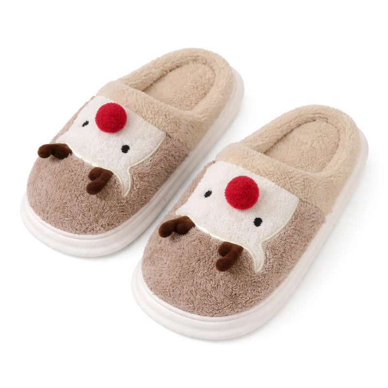 Chaussons Chauds en Peluche avec Motif Renne