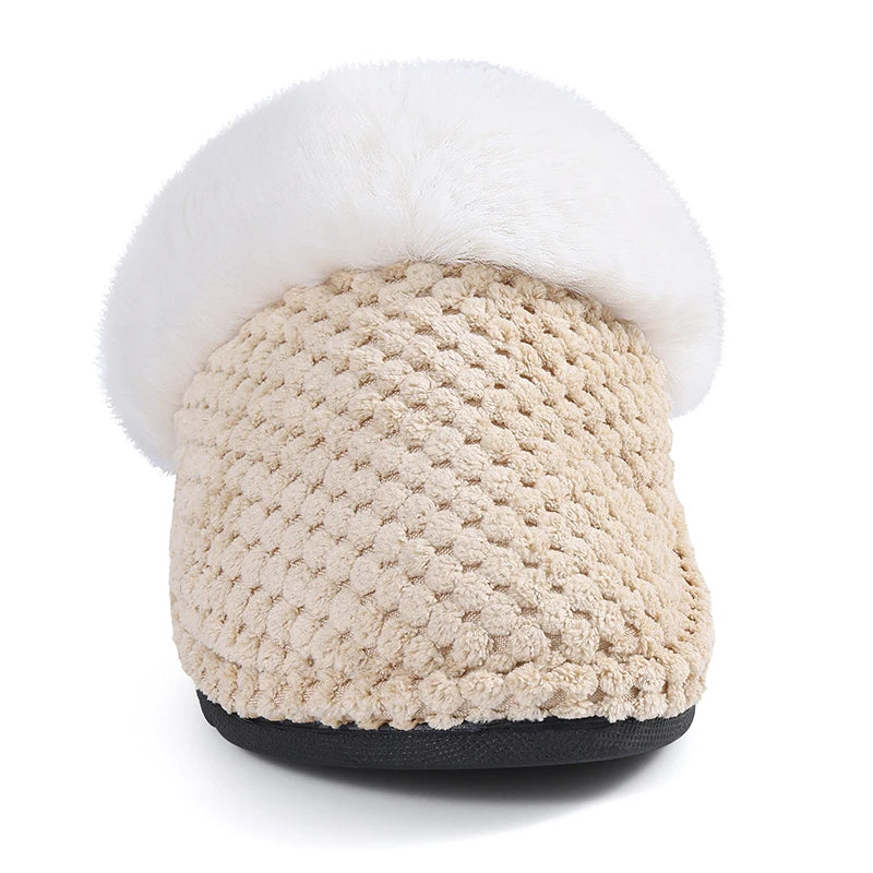 Découvrez nos pantoufles d’hiver pour femme, pensées pour offrir une sensation de confort et de douceur à la maison. Leur design élégant avec texture effet maille et col en fausse fourrure apporte une touche chaleureuse et raffinée, idéale pour les journées fraîches.